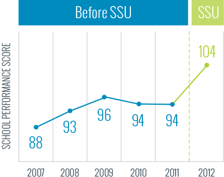 In just one year of SSU implementation, a middle school in Louisiana improved their school performance score by 10 points.